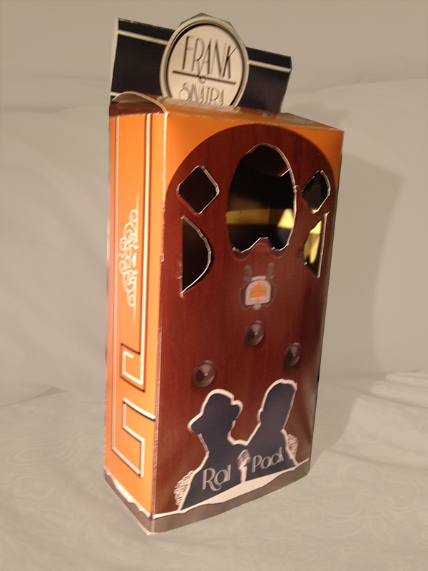 Front of an action figure box design for Frank Sinatra